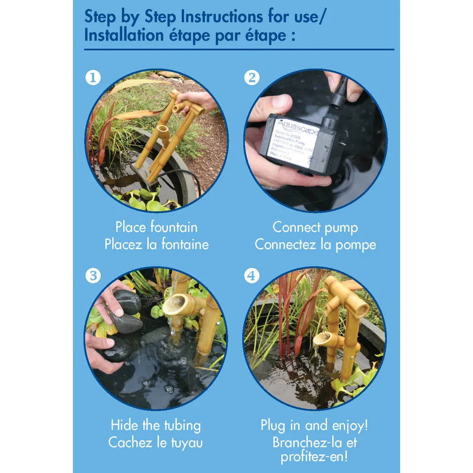 Elevate the beauty of your pond or container water garden with the captivating Aquascape Adjustable Pouring Bamboo Fountain. Perfectly suited for use with the Aquascape Patio Pond, this fountain imparts the soothing sound of cascading water as it gracefully descends from the fountain's spout. Crafted from top-notch polyresin, the fountain combines a lightweight design with easy installation, and it boasts resilience against UV rays and heat exposure. The polyresin bamboo material encapsulates the genuine texture, shape, and finish of actual bamboo, adding an authentic touch to your space. With an adjustable length ranging from 18" to 30" and a height of 15", this fountain offers both versatility and elegance. This does not include a pump. Recommend 90gph pump.