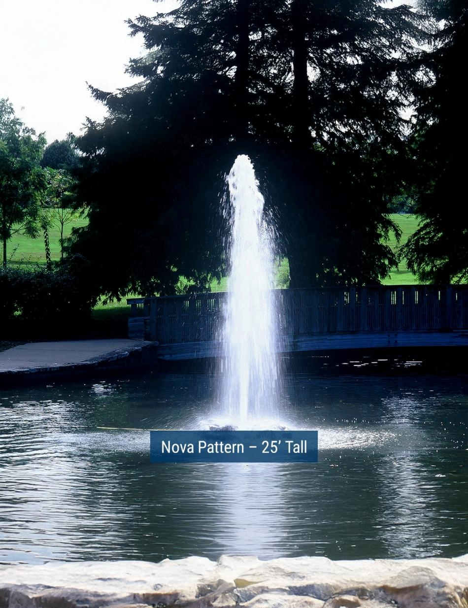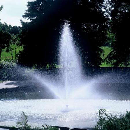 Additionally, our centrifugal pump design excels at producing high pressure, enabling the creation of impressive heights and displays while requiring significantly less horsepower compared to other fountain equipment. It is important to note that this fountain is intended solely for aesthetic purposes, as the volume of water being pumped into the air is not sufficient to be considered an aerating device according to oxygen transfer testing and Air-O-Lator’s stringent standards.