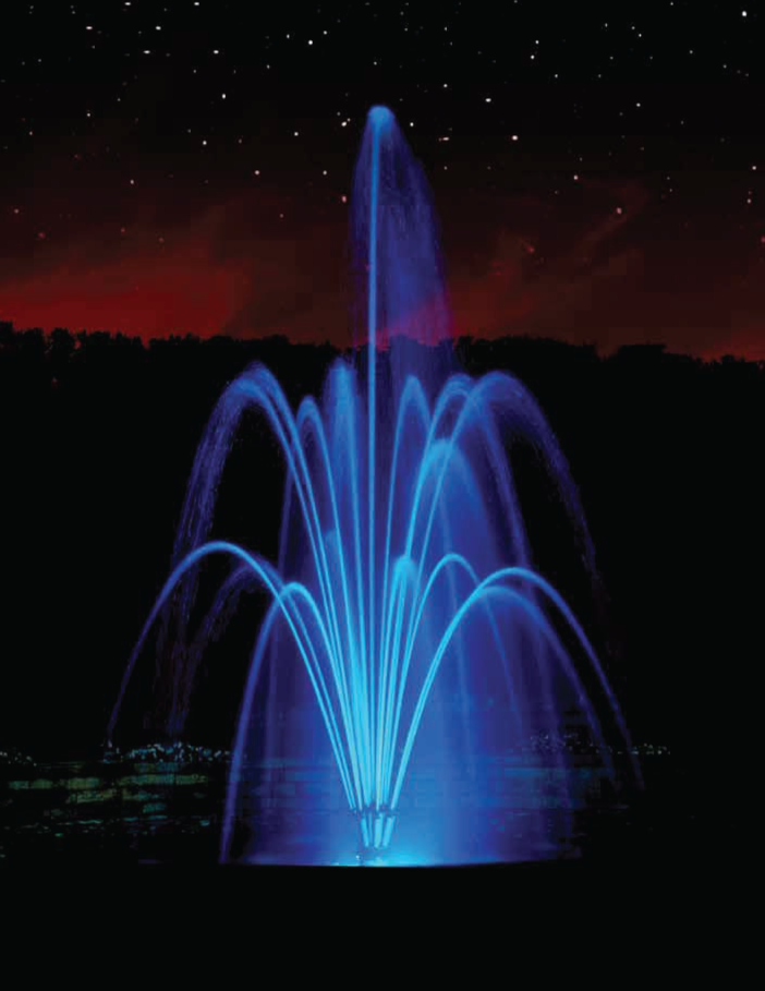 30 and 80W LED Lighting is offered in Stainless Steel Fixtures. Most often used for 1 HP to 5 HP fountain and display aerator patterns, 80W LEDs bring a crisp brilliance to any nighttime water feature display.