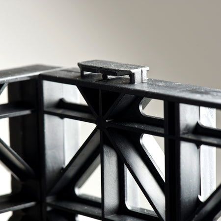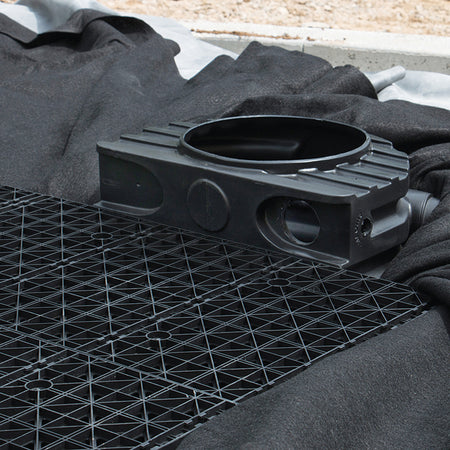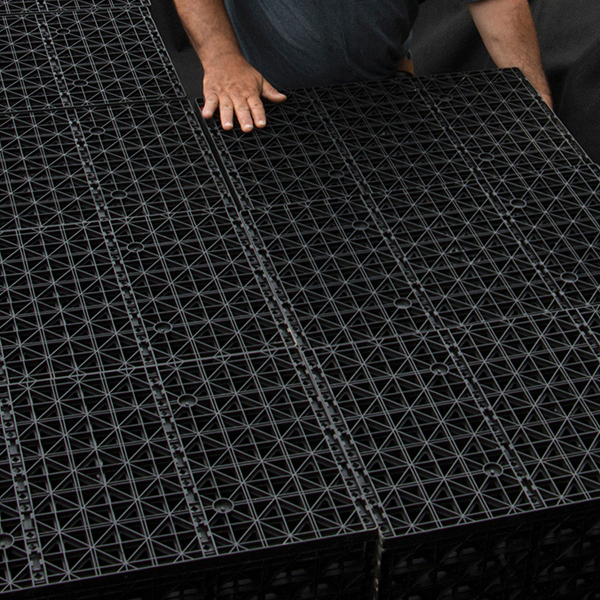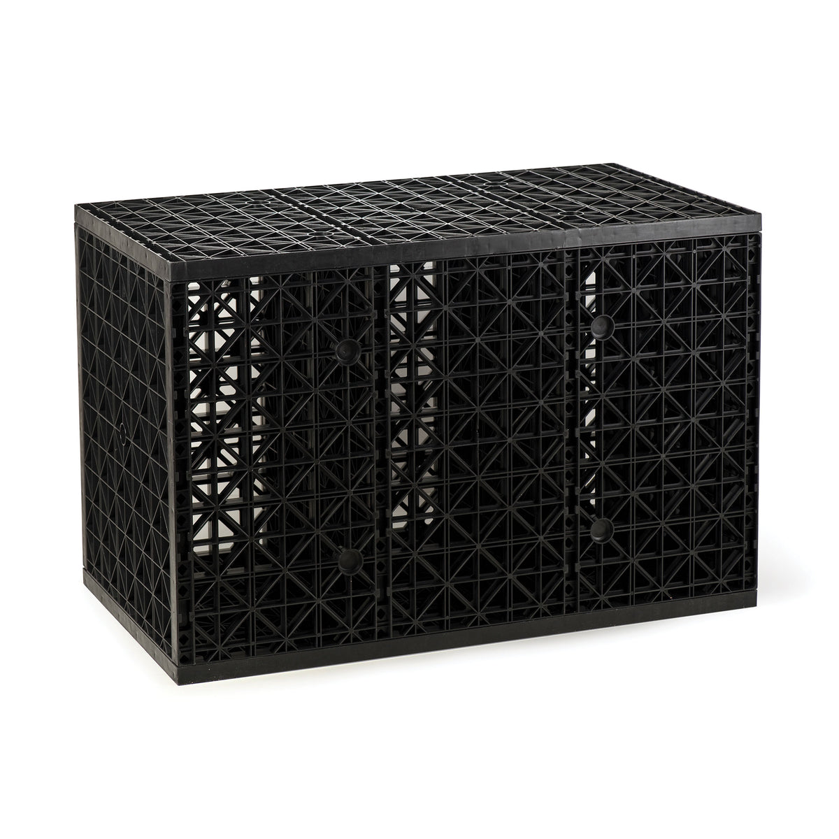 Water matrix blocks installed in lined excavations create weight-bearing underground water storage reservoirs. Atlantic's Eco-Blox are the strongest water matrix blocks available, capable of supporting over seven tons of distributed load. With 96% void space, Atlantic's Eco-Blox hold more water in a smaller volume, reducing the overall size of the basin. Save labor, time and money on Pond-Free, rainwater harvesting, and storm water management installations versus gravel-filled reservoirs. Eco-Blox lock together quickly and securely, easily supporting landscaping, pavers, gravel or sod for great design versatility. Arrange modular blocks in any configuration and any number of levels to accommodate almost any basin. Excellent for bog construction to create settling chambers below natural plantings of active bog filters. Warranty: 1 Year