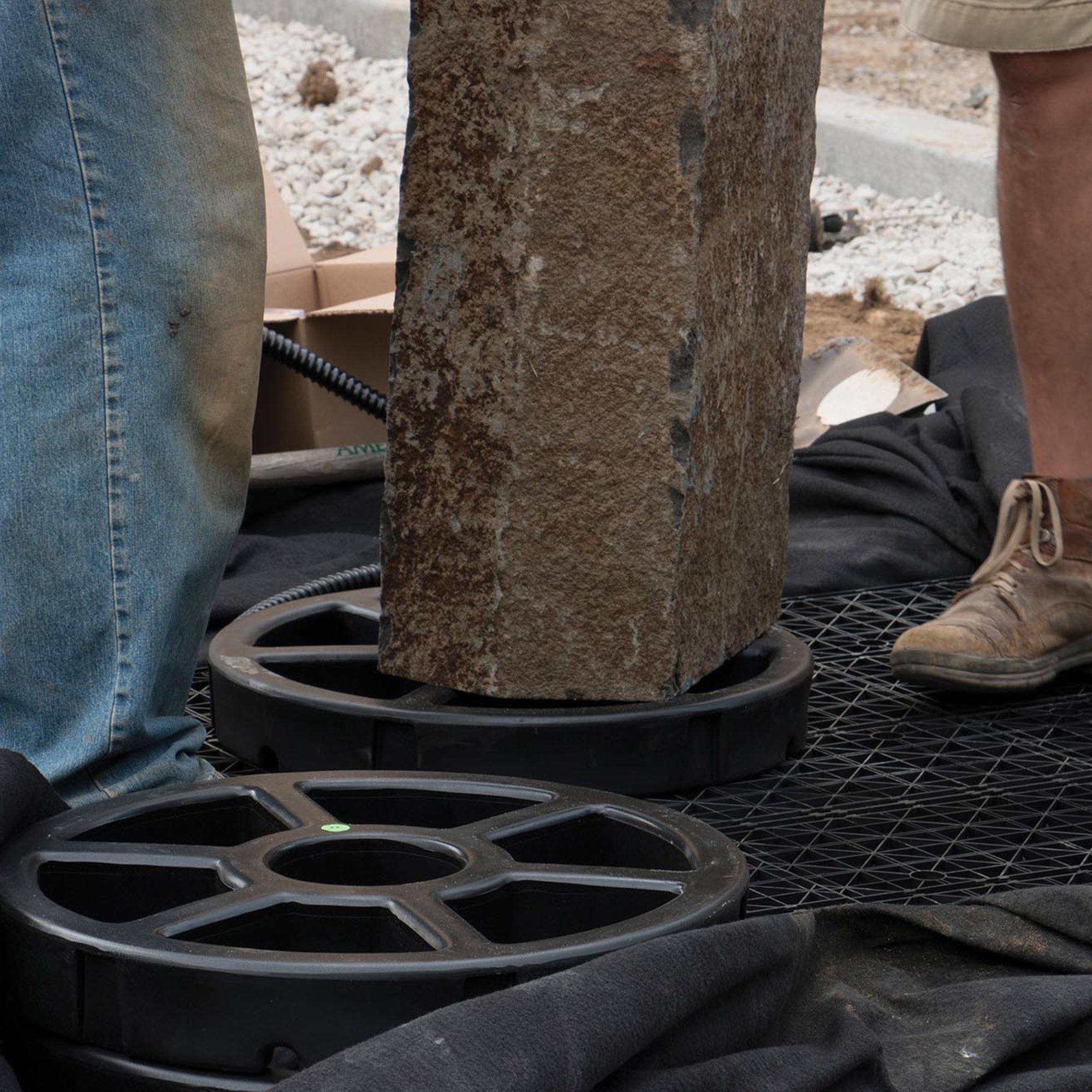 - Water matrix blocks installed in lined excavations create weight-bearing underground water storage reservoirs