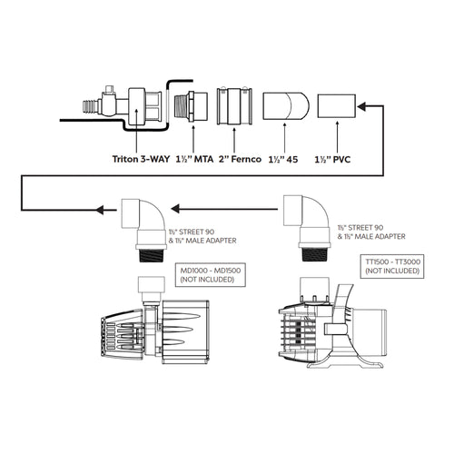 Atlantic’s Eco-Rise Diverter can split a single source into multiple adjustable outlets. Atlantic’s revolutionary Eco-Rise Diverter accepts 1.5” or 2” plumbing and provides 3 valved 1” outlets for ultimate flow control. It’s molded with true ball valves, the diverter can accommodate 1” Sch40 PVC. The economical diverter saves time, space and money over traditional manifolds. It’s designed to work seamlessly with newly redesigned Eco-Rise Systems including the PV7500 Pump Vault, 12” Eco-Rise and the Small Eco-Blox. The Eco-Rise Plumbing Kit includes the Eco-Rise Diverter, 25’ of 1” Flexible PVC Pipe and three 1.5” x 1” reducer bushings for connection to all Aura Vases and Hammered Brass Bowls. The ERKIT3 includes an Eco-Rise Diverter, 25’ of 1” Flexible PVC and (3) 1.5” x 1” Reducer Bushing.
