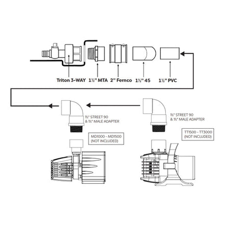Eco-Rise Plumbing Kit includes Eco-Rise Diverter , 25' of 1" Flexible PVC Pipe and three 1.5" x 1" reducer bushings for connection to all Aura Vase and Hammered Brass Bowls