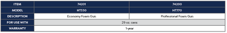 The HT330 is an economy foam gun and is used with 29 oz. cans and has a 1-year warranty.