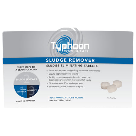 Easy to throw 0.50 ounce sludge eliminating tablets rapidly digest decomposing vegetation and fish waste. Plant and fish safe, it’s perfect for wading and swimming areas. When regularly applied as directed to the shoreline, tablets can remove up to 5” of muck per year! The TPWSR06 includes 192 Tablets and is 6lbs. 16 tablets per 1000 sq. ft. every two weeks and can treat 1,000 sq. ft. for 6 months. The TPWSR24 includes 768 Tablets and is 24lbs. 64 tablets per 4000 sq. ft. every two weeks and can treat 4,000 sq. ft. for 6 months.