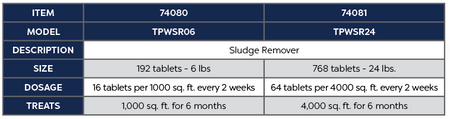 Easy to throw _ ounce sludge eliminating tablets rapidly digest decomposing vegetation and fish waste. Plant and fish safe, perfect for wading and swimming areas. When regularly applied as directed to the shoreline, tablets can remove up to 5 inches of mu