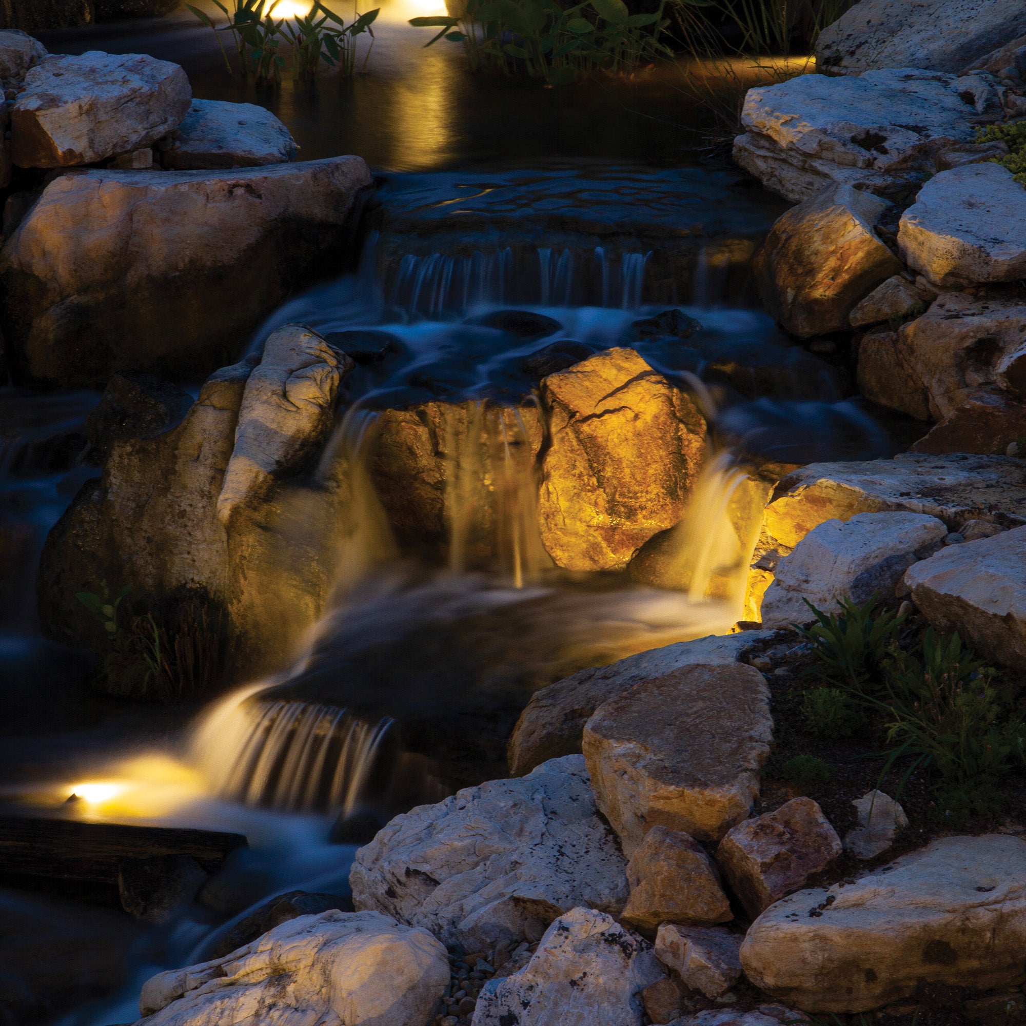 Atlantic’s LED Spotlights create focal points in and around the water feature. Atlantic’s compact solid brass Spotlights with oil rubbed bronze finish, blend into any landscape or water feature. The small remote drivers are 18” from the light and decrease heat and pull through 1” sweeps. The submersible lights function equally well out of water and throughout the landscape. The LED units inside lights are easily replaceable. The Warm White matches 2800˚ Kelvin temperature of halogen and incandescent lighting. The Spotlights feature a 20’ power cord and quick-connect plug for easy installation. The flat 2-wire cord on Warm White can be cut, stripped and tied into existing systems.