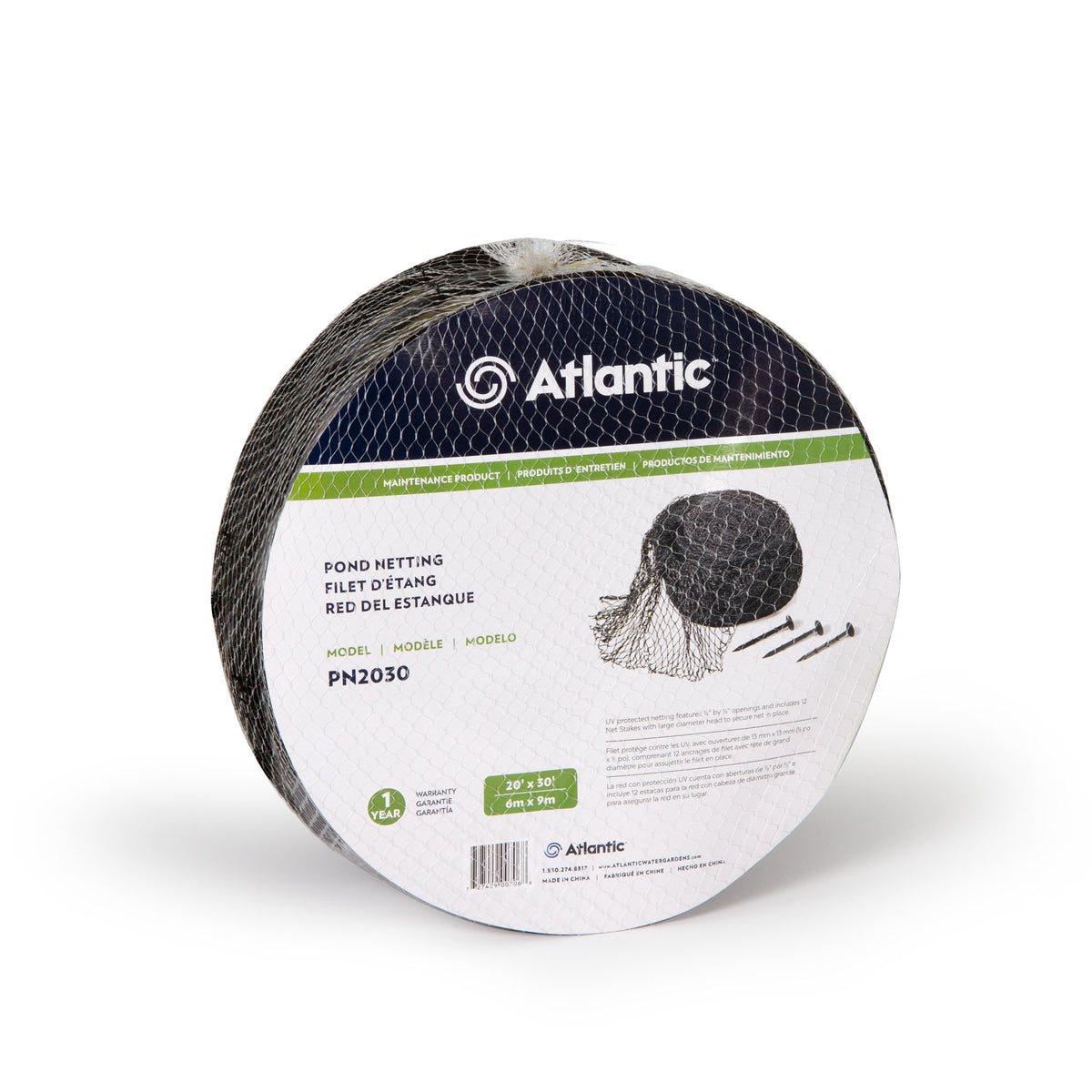 Atlantic’s Netting keeps out leaves and other wind blown debris for a clean pond in the fall and spring. Its durable poly netting is UV-resistant for an extended lifespan. Its physical barrier also protects fish from heron and the predators. Netting your pond helps reduce organic waste that can fuel algae growth and reduce oxygen levels. 0.5” x 0.5” openings keep out smaller windblown debris. With 4 pre-cut, 3 roll sizes and sizes ranging from 15-100 feet, it’s fit for most water feature designs. The new stake design is longer with a larger diameter head for improved net retention.