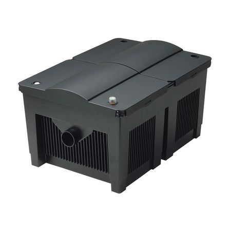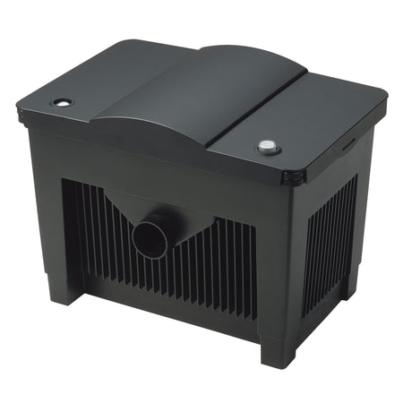OASE BioSmart flow through bio-mechanical filters clean and clear pond water which returns to the pond by gravity. The BioSmart filters uses multiple filter zones to slow water, remove debris and provide a surface area for beneficial bacteria. As the water velocity slows in the filter, fine particles in suspension settle and are trapped in the filter zones. There's no need to remove or manually unclog the filter foams to clean. There are three types of high-surface area filter foams that provide exceptional biological filtration capacity to remove ammonia and nitrites. The BioSmart qualifies for the OASE Clear Water Guarantee when paired with the proper pump and UVC Clarifier. It includes filter foams, a 3" Sch40 outlet adapter and metric step fittings. The BioSmart 5000 has a 3” outlet, a maximum flow of 1,450 GPH and hose sizes of 0.75” to 1.5”. The dimensions are 22”L x 22”W x 16”H and has a pond volume of up to 5,000 gallons. It has a 3-year warranty.