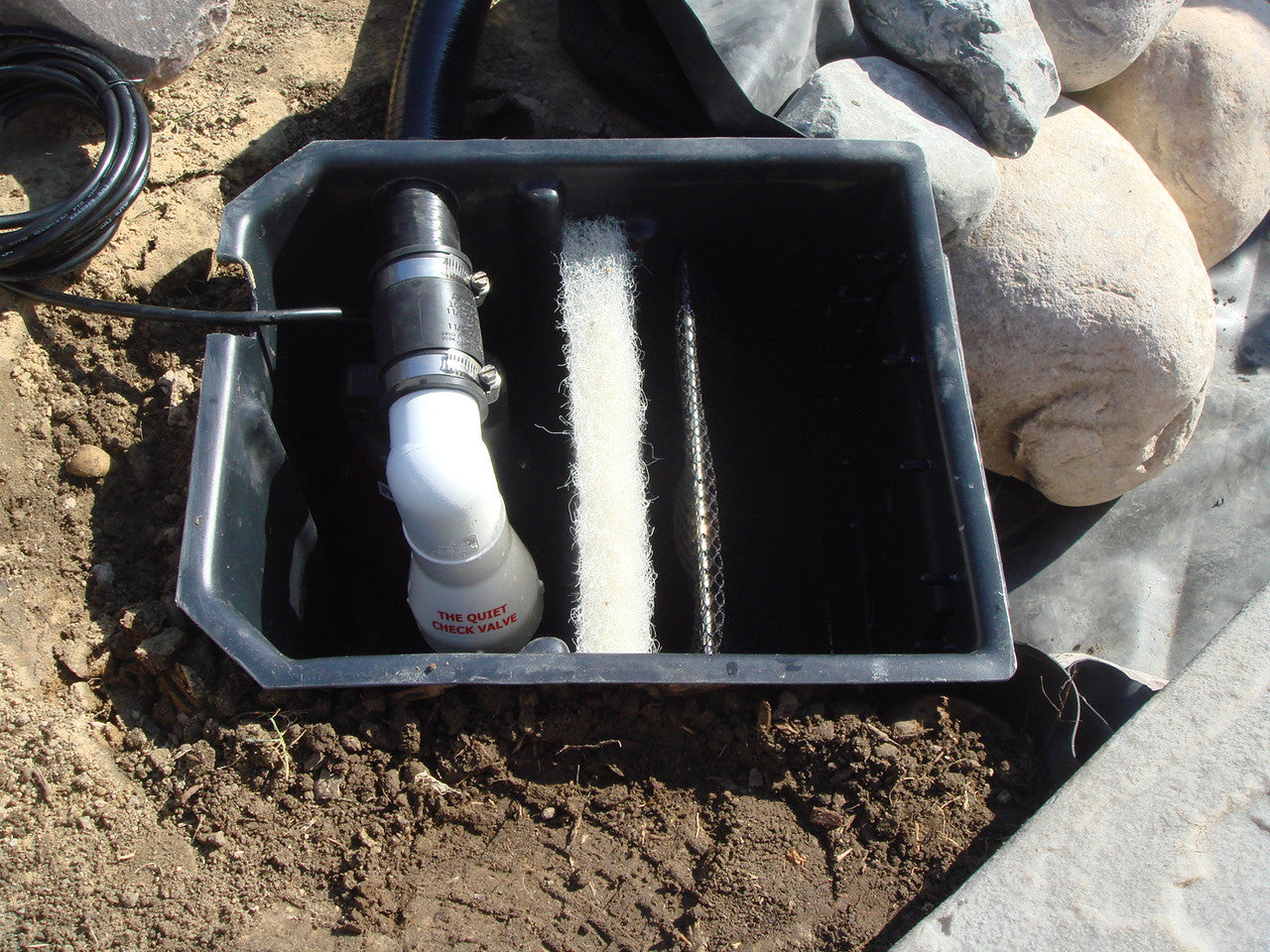 A: The pond pump is placed inside the skimmer. This protects the pump while allowing it to draw water through the skimmer opening, filtering out debris before it reaches the pump.