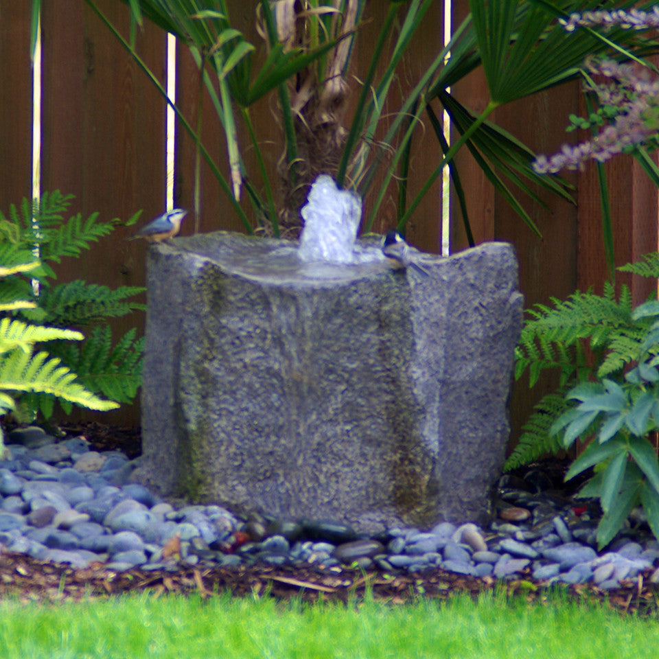 Each GFRC fountain is molded from a real stone and made of durable Glass Fiber Reinforced Concrete, giving them a very natural look and texture. The quality construction ensures many years of durability, yet weighs hundreds of pounds less than identical "real" stone.