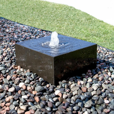 Part of our Zenshu Fountain series, this granite Heiho Fountain provides a simple way to add interest to your landscape with its smooth sides and flat surface surrounding a small bubbling fountain spectacle. Situated in the corner of a rock or stone bed as a single or a triple, the smooth water movement is a calm display of serenity.