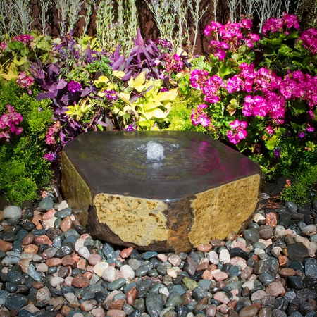 Includes 36" Achelous molded fountain basin, 800 gph mag-drive pump, plumbing, tubing, and black polished pebbles.