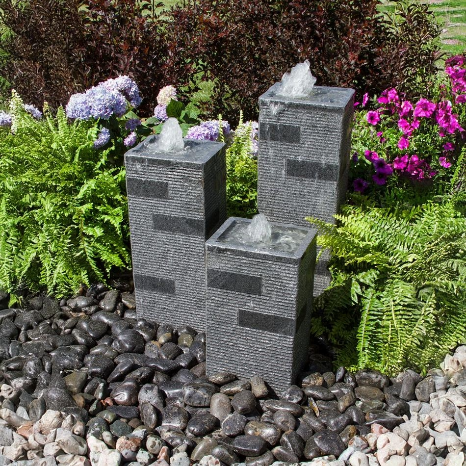 These fountains are reminiscent of a big city skyline complete with sky scrapers, geometric lines, and a modern feel. Bring some architecture to your own landscaping with one of these beautiful towering triple fountains.