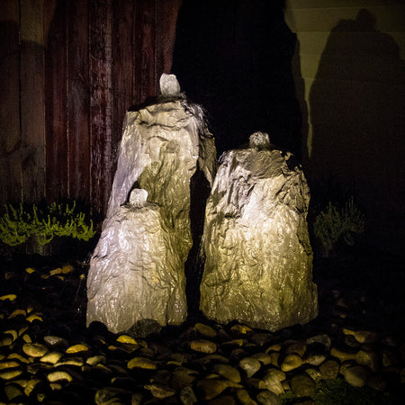 Like the soaring mountains of Europe, these fountains provide a rugged and tranquil beauty to any landscape setting. The natural beauty of real rock with the added durability and lighter weight of Glass Fiber Reinforced Concrete. Each fountain is molded from real stone and made of durable GFRC (Glass Fiber Reinforced Concrete), giving them a natural look and texture. The quality construction ensures many years of durability, yet weighs hundreds of pounds less than identical "real" stone.