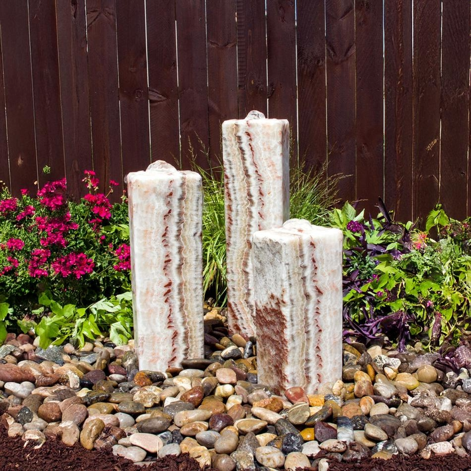 A "transitional" fountain design that offers today's popular color trends with stone cut in a formal design. Each piece has 4 smooth sides and is a wonderful addition to any landscape.