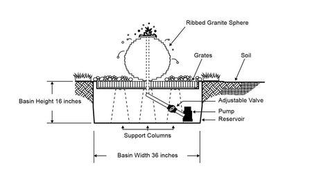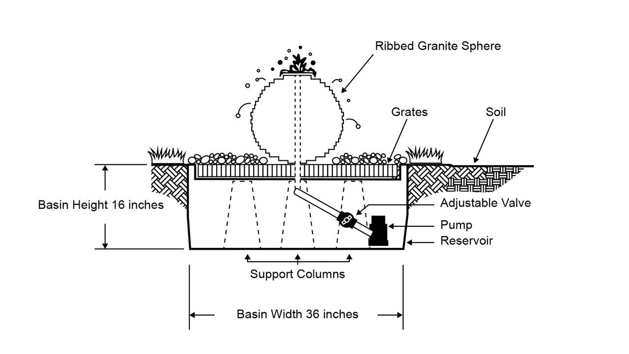 Water glides over the wavy ribbed beehive shape, falling from rib to rib, adding movement to the flow.