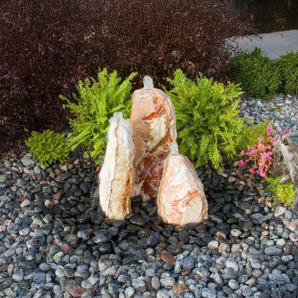 Hewed from the mountains of the world, these "transitional" fountain design that offers today's popular color trends with stone cut in a rough fashion. Offering a powerful presence, these fountains are a wonderful addition to any landscape.