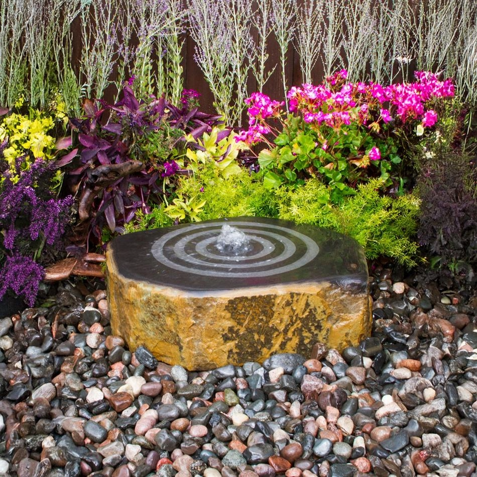 Includes 36" Achelous molded fountain basin, 800 gph mag-drive pump, plumbing, tubing, and black polished pebbles.