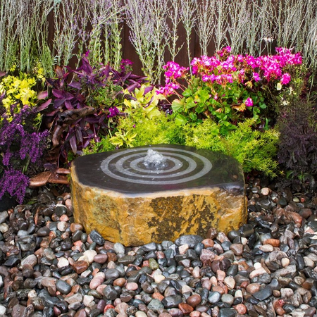 Part of our Zenshu fountain series, the Suwaru fountain is uniquely shaped with a circular pattern expounding from the center of the fountain. The rough edges and distinctive form provides for a natural look in any rock setting, particularly small landscapes that allows for it to minimize area and maximize attraction.