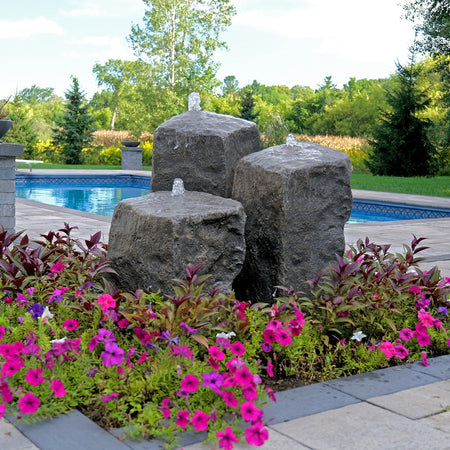 The Watershed Fountain Rocks provide a rugged and tranquil beauty to any landscape setting with the natural beauty of real rock with the added durability and lighter weight of Glass Fiber Reinforced Concrete (GFRC). Our GRFC bubbling boulders have a very natural look and texture, and Blue Thumb's quality construction ensures many years of enjoyment, yet these fountains weigh hundreds of pounds less than identical "real" stone.