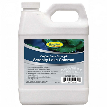 Just one quart of this ultra-concentrated formula is equal to a gallon of other dyes on the market! The use of fish safe dye is a common part of an overall pond maintenance program. EasyPro Lake Colorant liquid formula is applied early in the spring to improve the appearance of pond water.