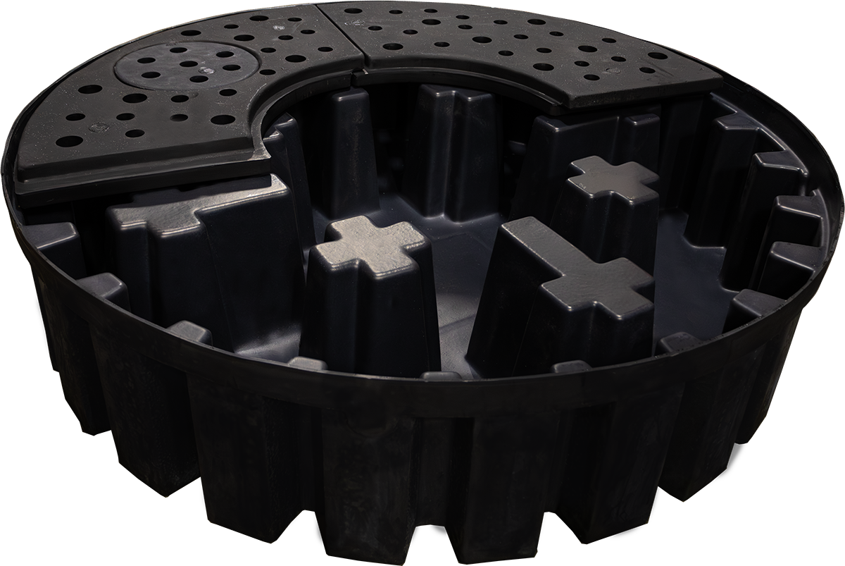 Ideal for large basalts and large vase style fountains. The basin has multiple molded legs which transfer the weight into the ground below, eliminating bowing or sagging.