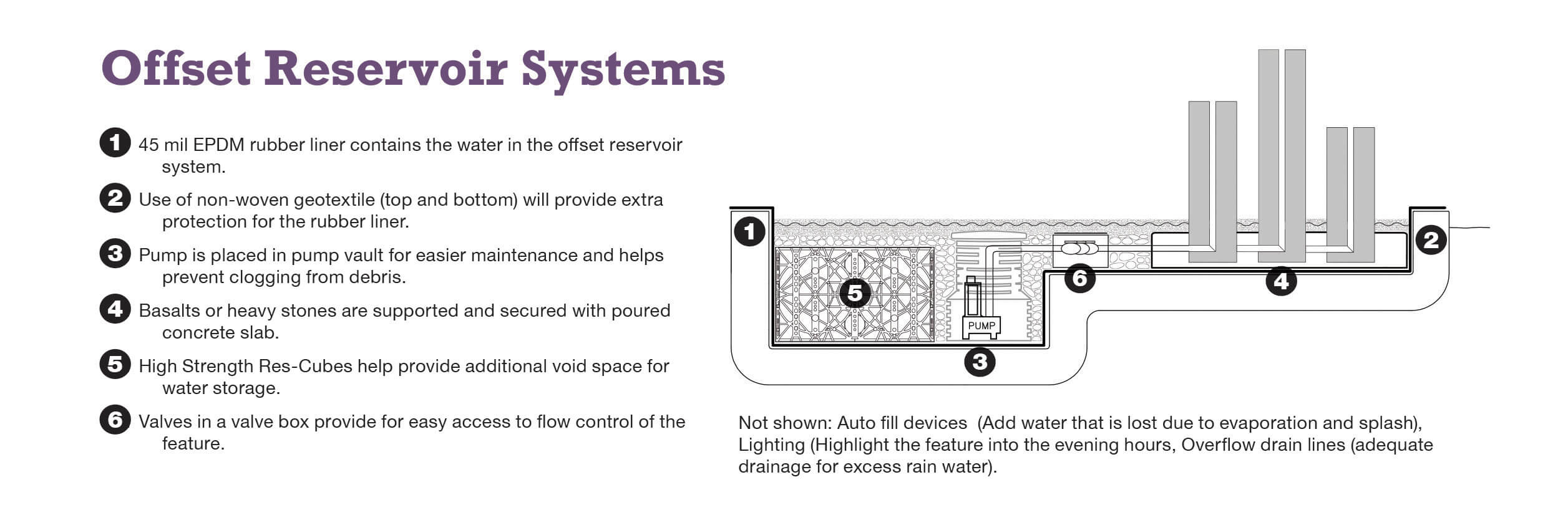 Too large for a standard basin, these large basalts work best with an offset reservoir system.