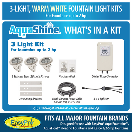 EasyPro AquaShine Three Light Warm White LED Fountain Light Kits