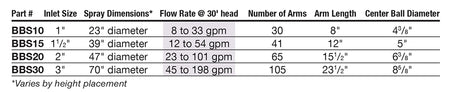 - 47" Spray Diameter: 2" Inlet