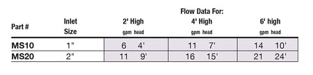Use adequate screening on pump inlet to prevent debris from plugging nozzles Inlet 2" FPT