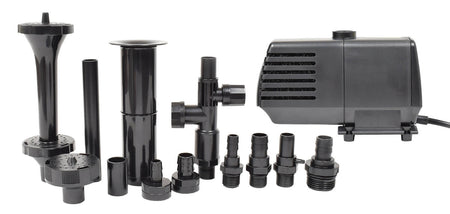 Flow Restrictor Valve: Each fountain set includes a flow restrictor valve, with the 600 GPH – 1350 GPH sets offering a diverter valve for simultaneous fountain and waterfall operation.