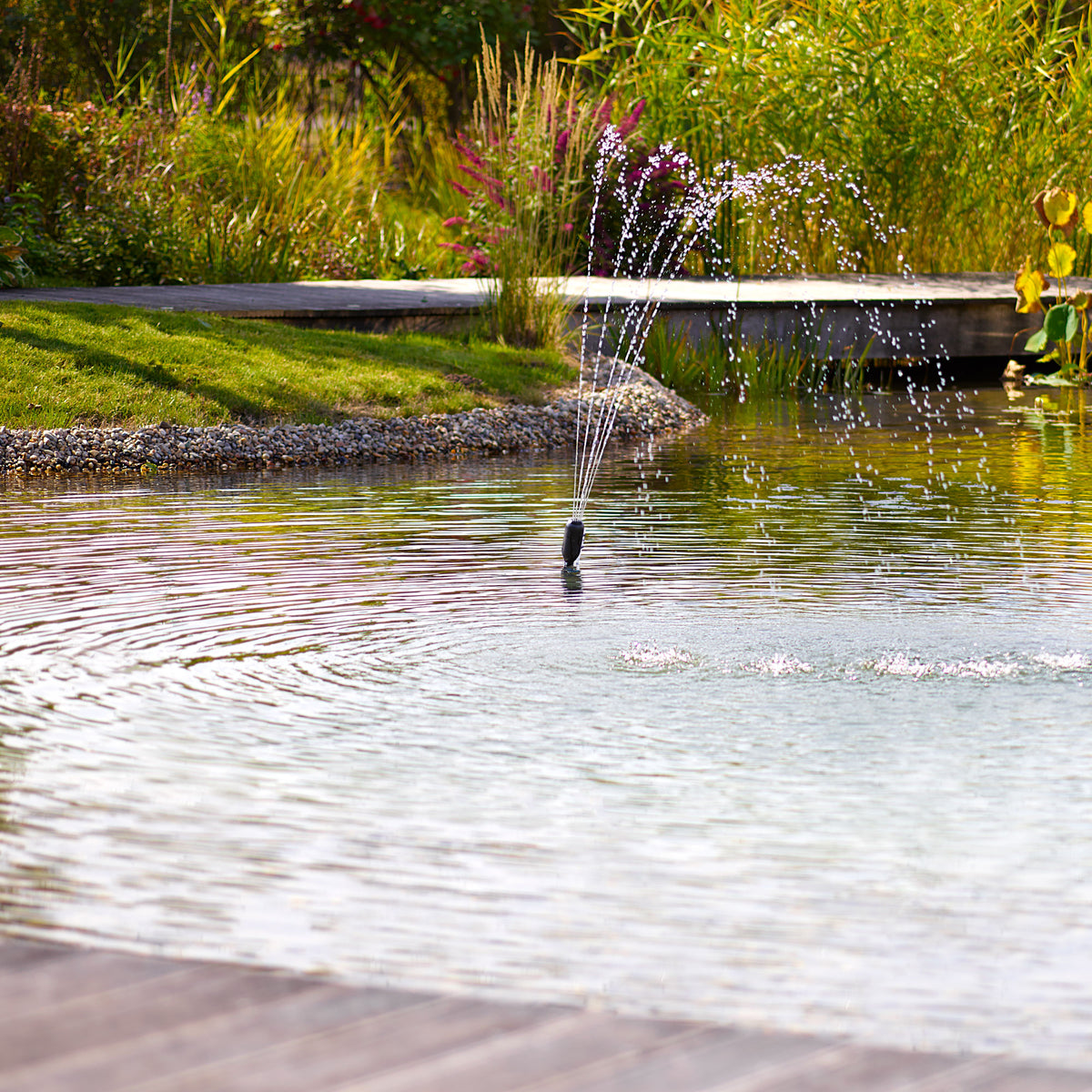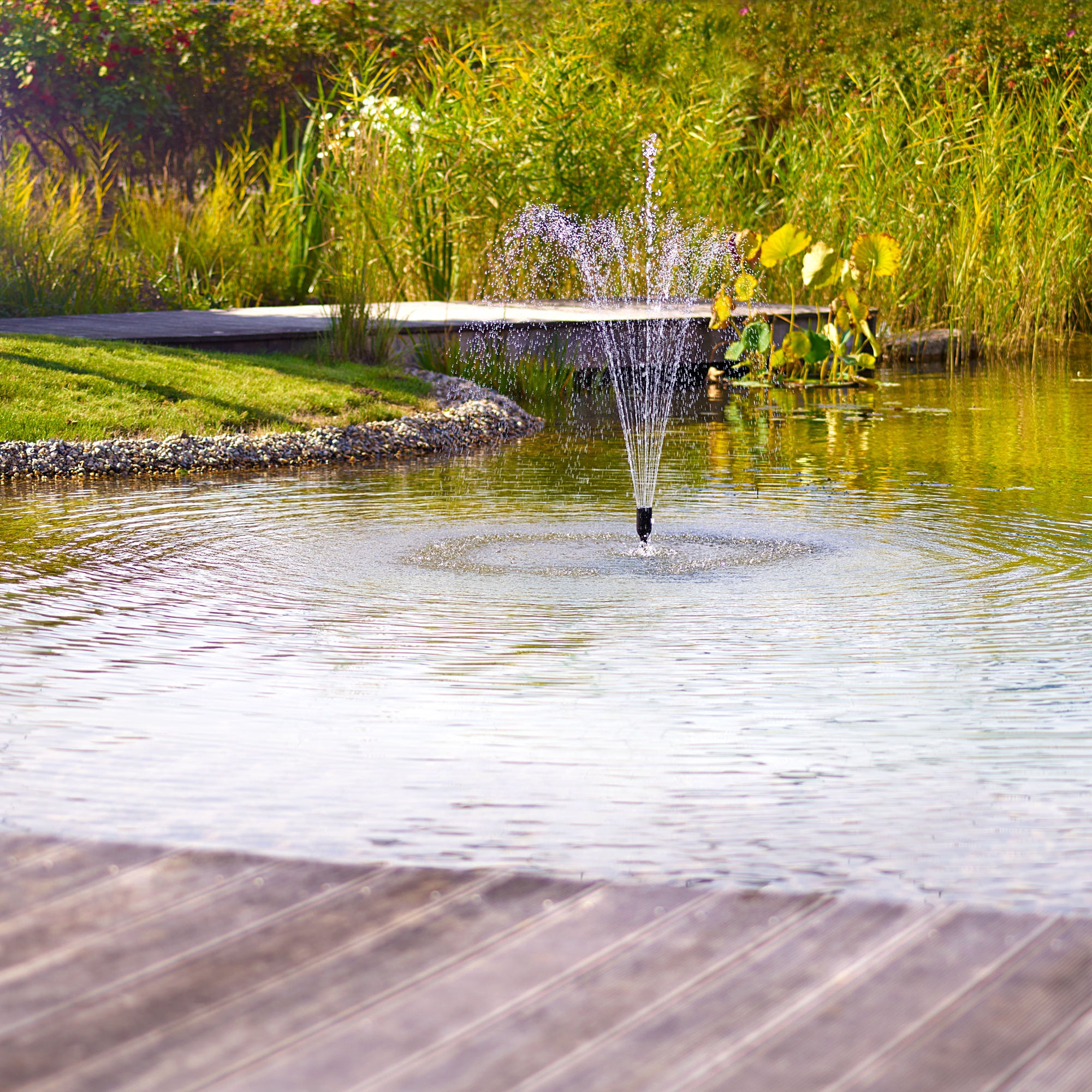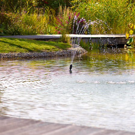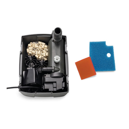 OASE’s all-in-one in Filtral UVC pond filters has an integrate pump and filtration with a decorative element. The OASE Filtral UVC multifunctional complete solution combines mechanical, biological and Ultraviolet filtration with multiple nozzle options to keep small ponds crystal clear, guaranteed. Its easy open clips allow quick access to the filter media without dismantling the nozzle assembly while viewing port allows visual confirmation of proper UVC operation. The pivoting telescoping nozzle extends 5", while built-in flow control and diverter valve can run an optional small secondary water feature using the included stepped hose adapter. The integrated grounding plate protects the entire water feature with unparalleled safety. The Filter Foam and two types of bio-media, including ceramic, provide the surface area for beneficial bacteria to deliver clear and healthy water. The aeration nozzle greatly increases gas diffusion and offers the additional benefit of increased circulation.