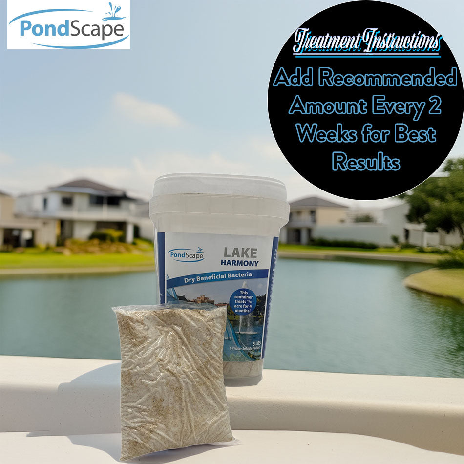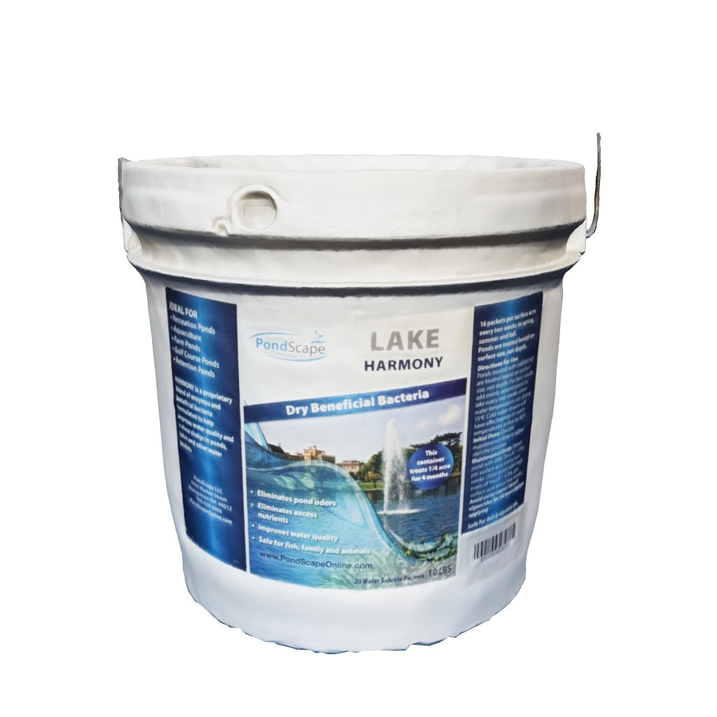 PondScape Lake HARMONY is a premium beneficial bacteria treatment that naturally cleans and clarifies your pond water. Each box contains convenient 8oz water-soluble packets that dissolve quickly when tossed into your pond—no mixing or measuring required.