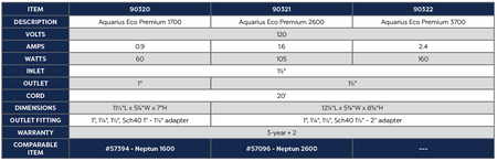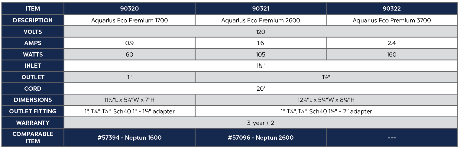 Aquarius Eco Premium pumps are designed to run in a variety of environments, including fresh, salt and chlorinated water.