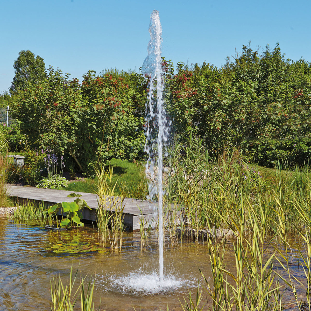 OASE deflecting blade technology stabilizes display; efficient nozzles lower water consumption