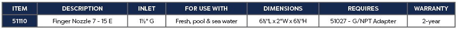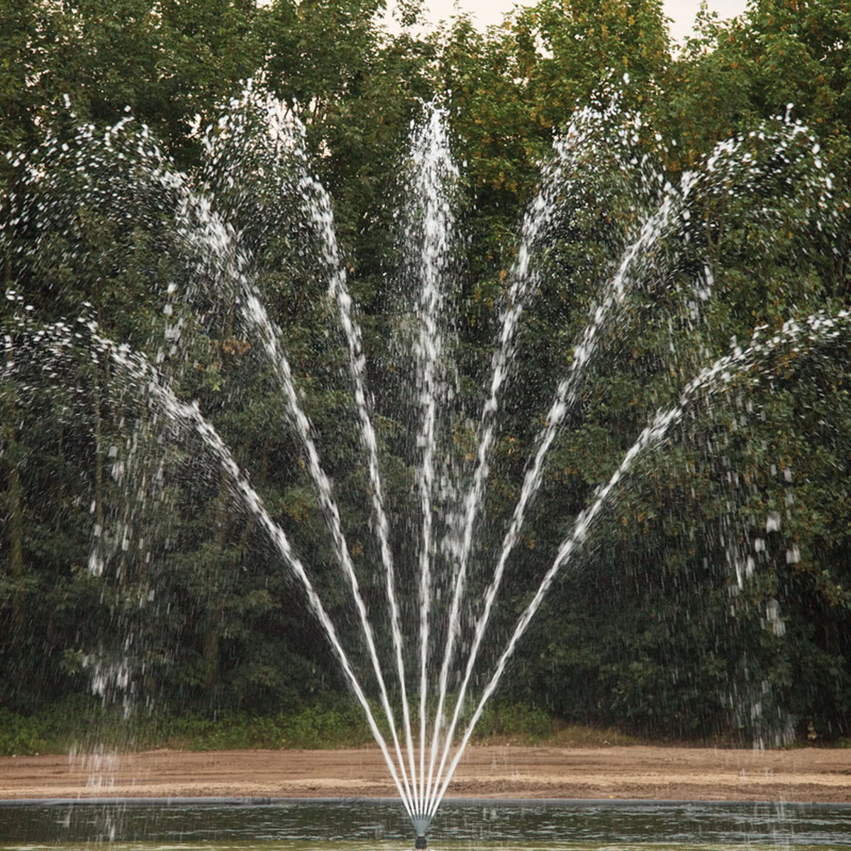 OASE Finger Nozzles generate seven clear single stream jets that are resistant to wind deflection. The Finger Nozzle is a stainless steel multi-jet nozzle that achieves a maximum fountain height of 13'. It’s Intended for fresh water, pool and sea water and is water level independent.