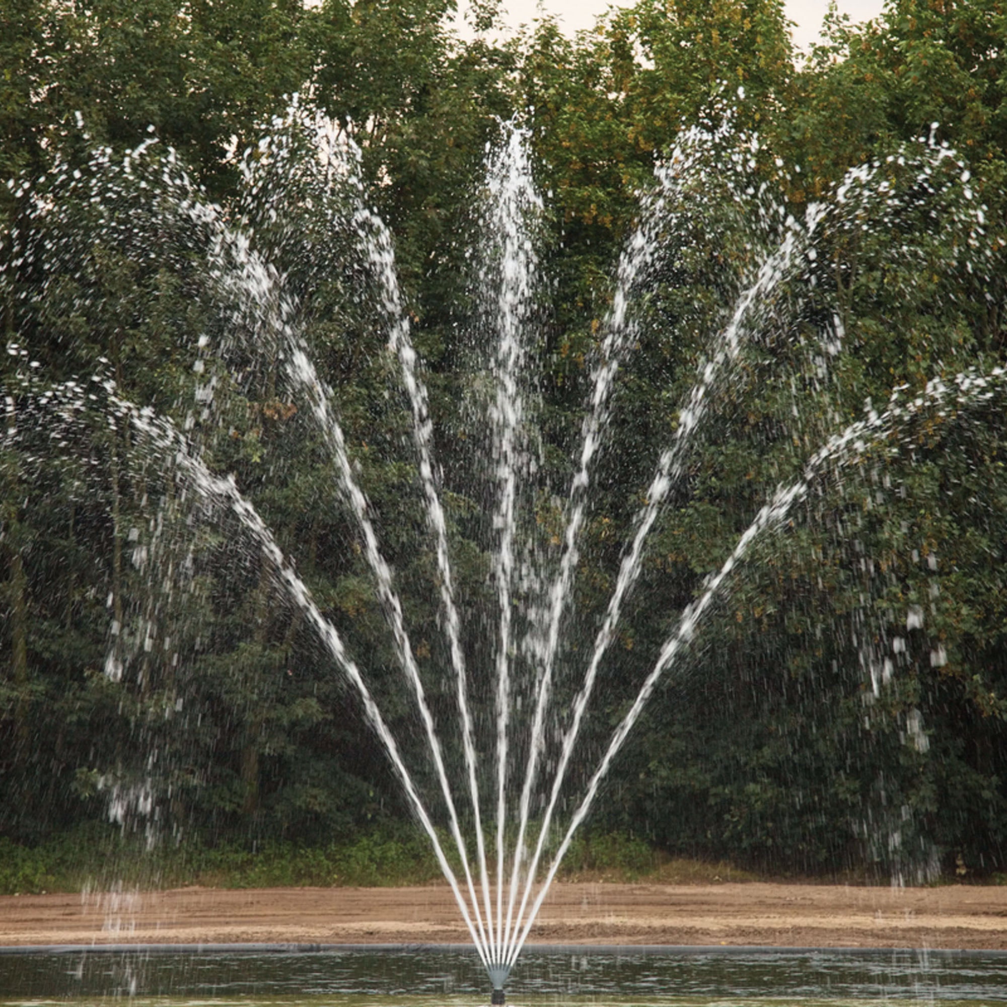 Stainless steel multi-jet nozzle achieves a maximum fountain height of 13'