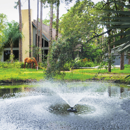 Floating fountains offer economical shallow water aeration combined with an attractive visual display