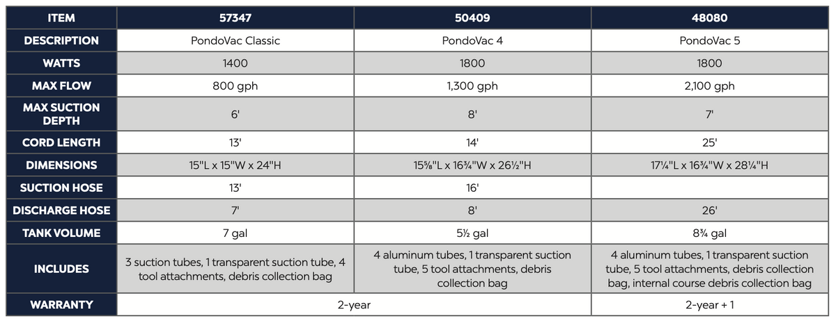 - Powerful 1400-watt motor with 800 GPH suction capacity