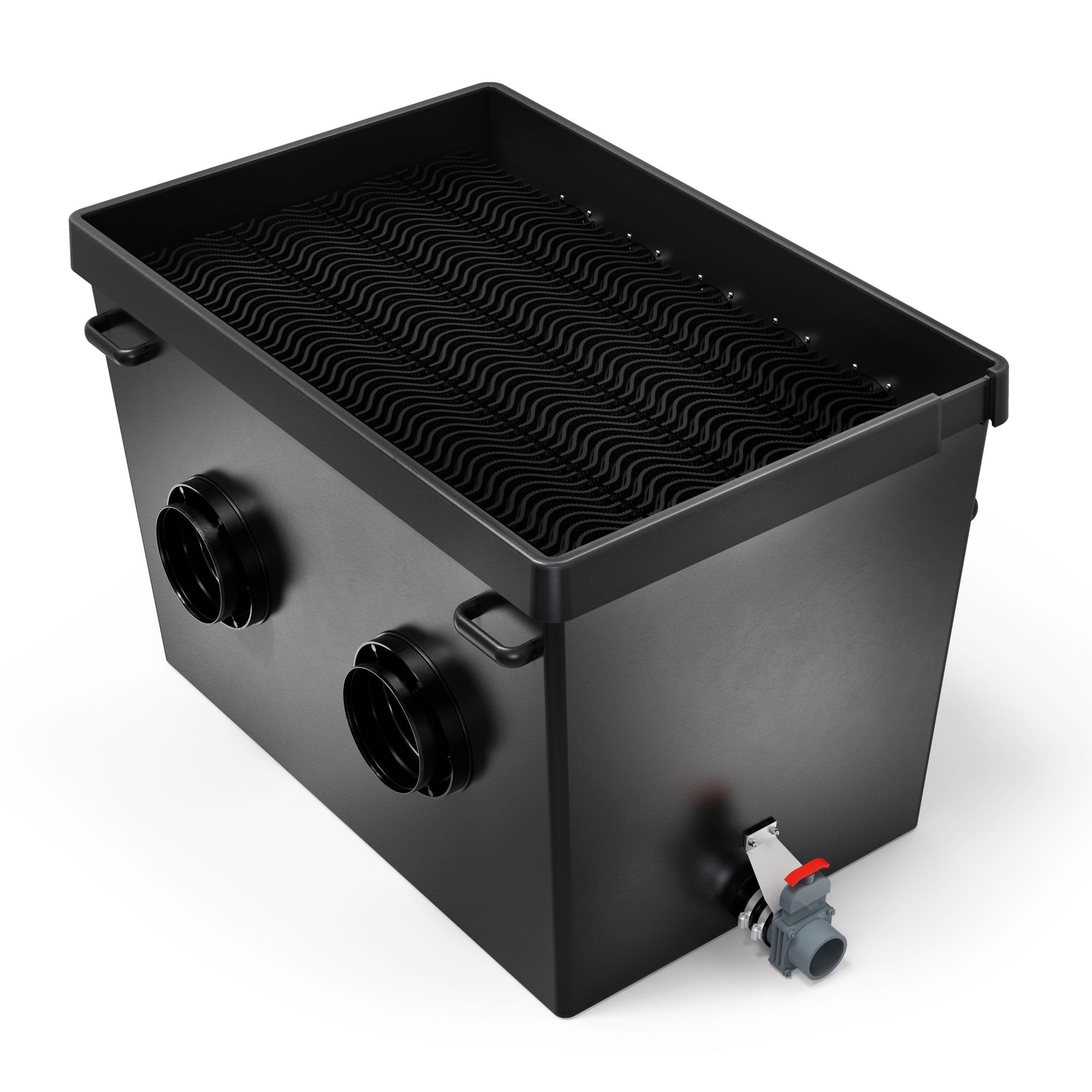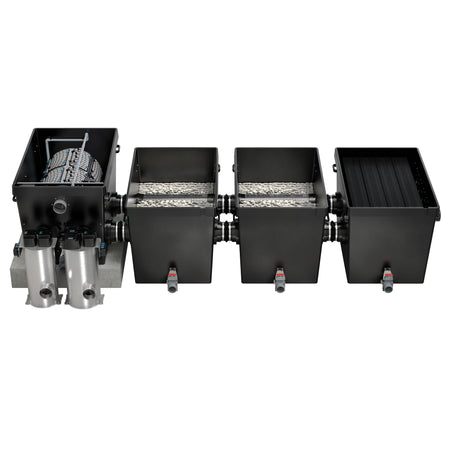 Pump-fed Discharge Module features ClearWave standing bed media for biological filtration for crystal clear water
