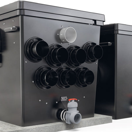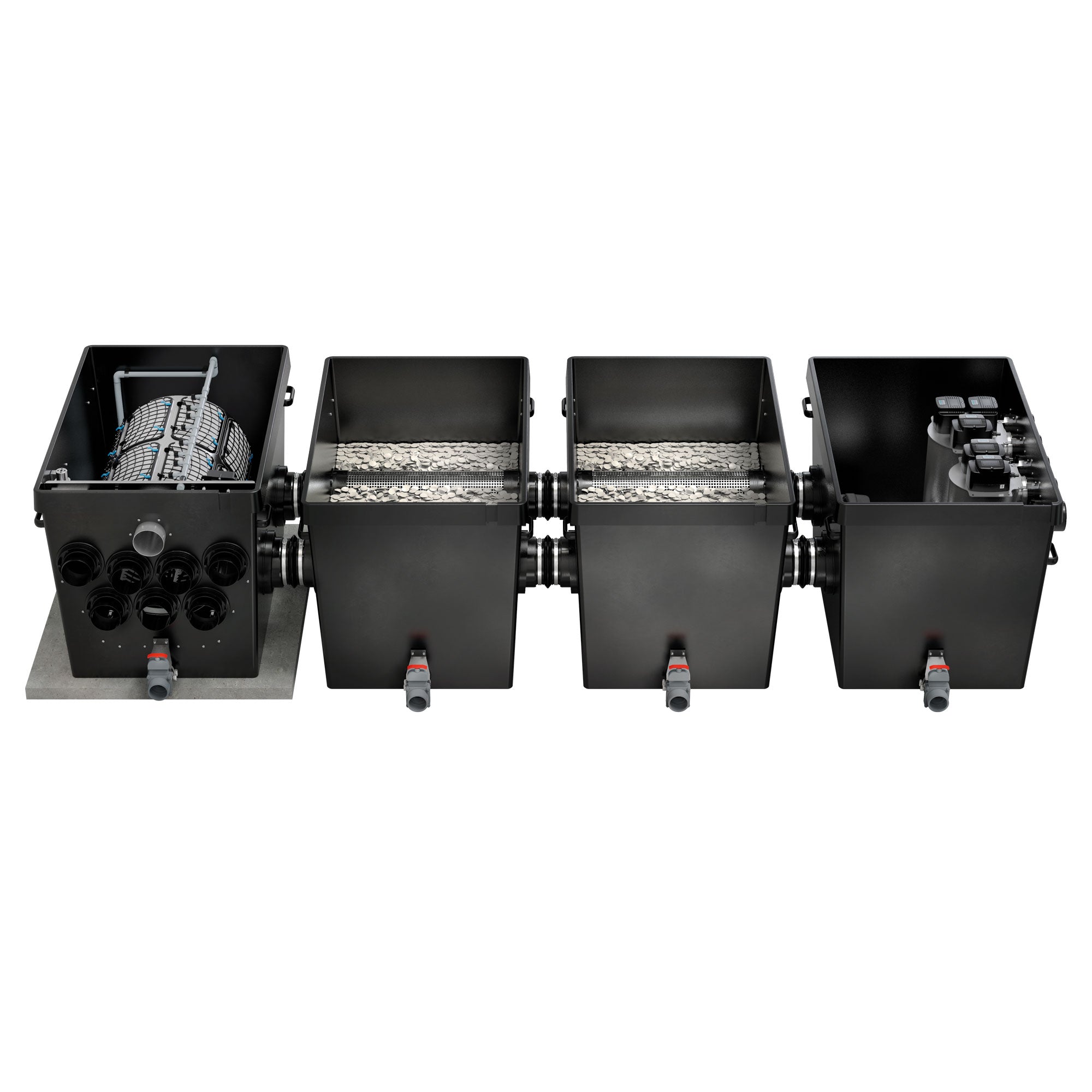 ProfiClear Premium XL Gravity-fed filters mechanically screen, biologically filter and highly aerate pond water throughout modules