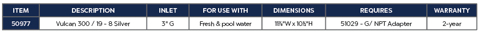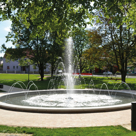 The OASE Vulcan 300 generates a bundle of tiered, clear jets that are stable in wind. The 19 Comet nozzles can be adjusted individually as desired or removed for cleaning. The Vulcan 300 is intended for fresh water and pool water and is water level independent.