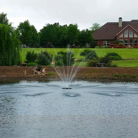 The Palatial Electric Display Floating Fountain is a high quality 115v or 230v 1/2hp fountain designed for smaller ponds (up to 1/2 acre) where the ease of installation and maintenance along with the beauty of 4 different streaming display options is top of mind for any pond owner.