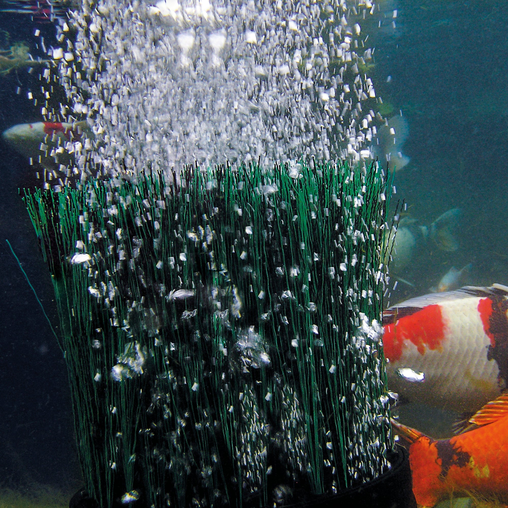 OASE’s OxyTex aeration systems maintain high oxygen levels in the summer and aid in gas diffusion in the winter. OASE’s OxyTex combines a high efficiency pond diffuser with a high surface area filter medium. The OxyTex provides a unique combination of gas diffusion, water circulation and nutrient decomposition. It’s the ideal habitat for beneficial bacteria, the OxyTex improves filtration efficiency and contributes to a healthy pond environment. It supplements ammonia and nitrite removal capabilities of the pond bacteria. it’s designed for use with the OASE AquaOxy 450. Its patented grass-like fiber structure blends perfectly into any pond. The OxyTex features a replaceable air stone for a long service life. The OxyTex includes a 16’ of 0.187” air hose, an air hose adapter for larger diffuser tubing and a diffuser plate. The OxyTex has a maximum pressure of 5.8psi, a maximum depth of 14’ and a maximum LPM of 16.6. It includes tubing size of 0.187” x 16’, dimensions of 9”W x 12”H and a 2-year warranty.