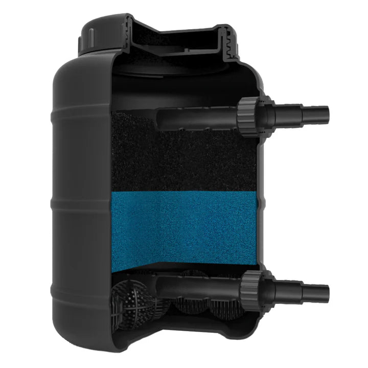 Includes filter body, UV clarifier, water tight lid, water inlet, 2 filter pads, bioballs, and water outlet adaptor
