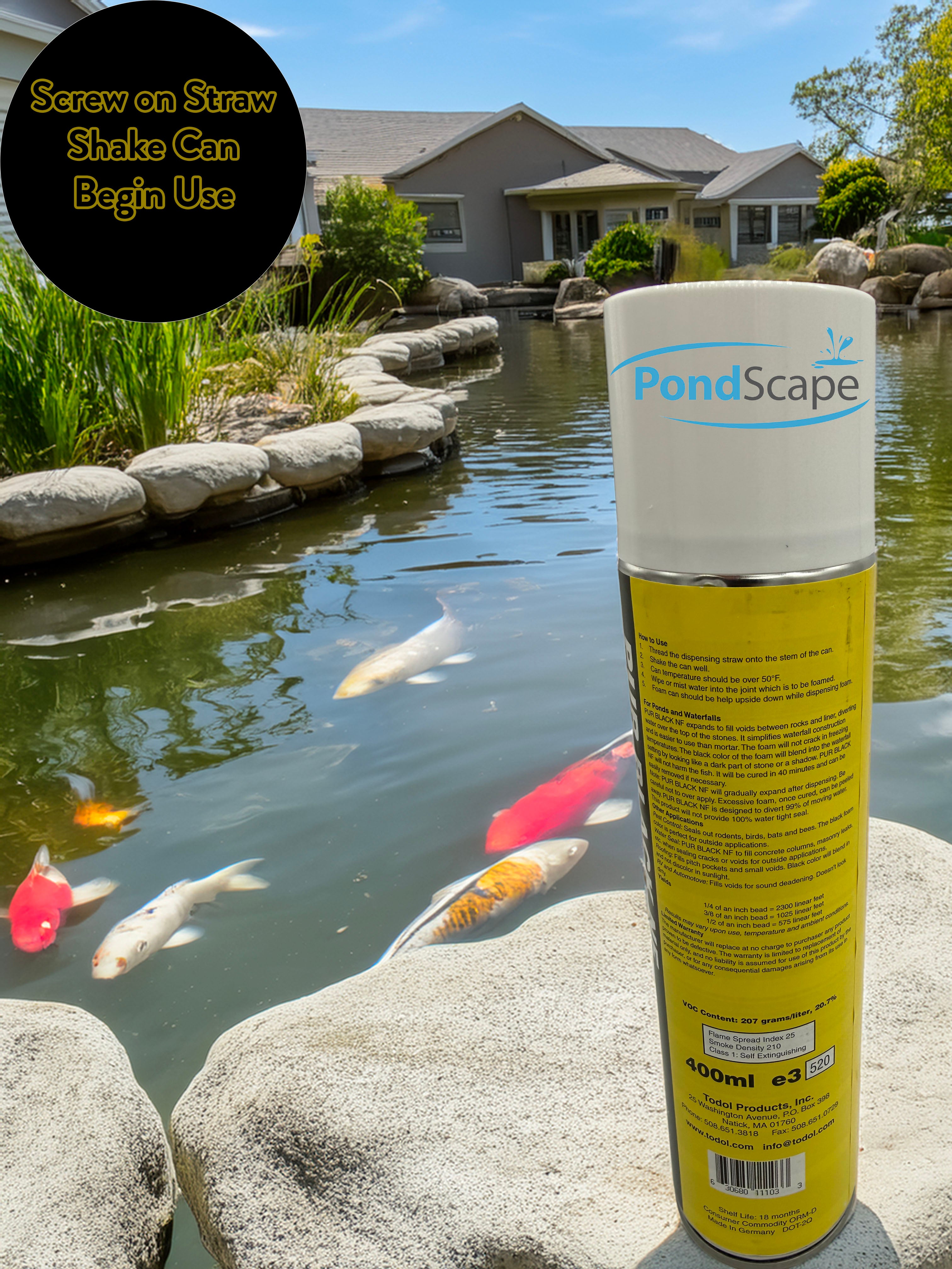This single-component polyurethane foam comes in a convenient self-dispensing 16 oz can with an attached application straw—no foam gun required. Simply shake the can, attach the straw, and dispense. The foam expands to fill voids, gaps, and irregular spaces between rocks and liner, then cures to a firm, waterproof seal within 24 hours. Once cured, the black foam is UV-resistant, fish-safe, and can be trimmed, carved, or shaped to achieve the perfect finish.