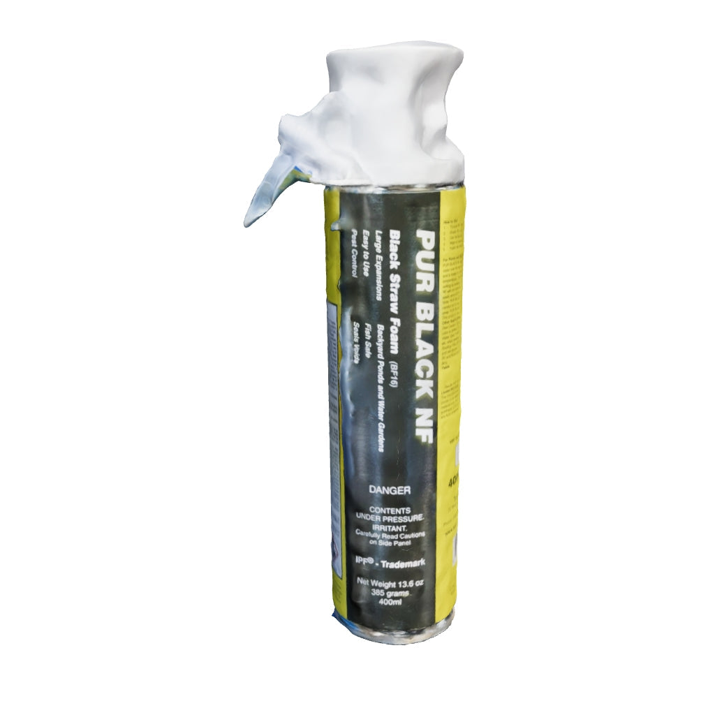 A: Yes. Once fully cured (24 hours), PUR Black NF is completely inert and safe for all fish, plants, and aquatic life. Do not allow uncured foam to contact pond water.
