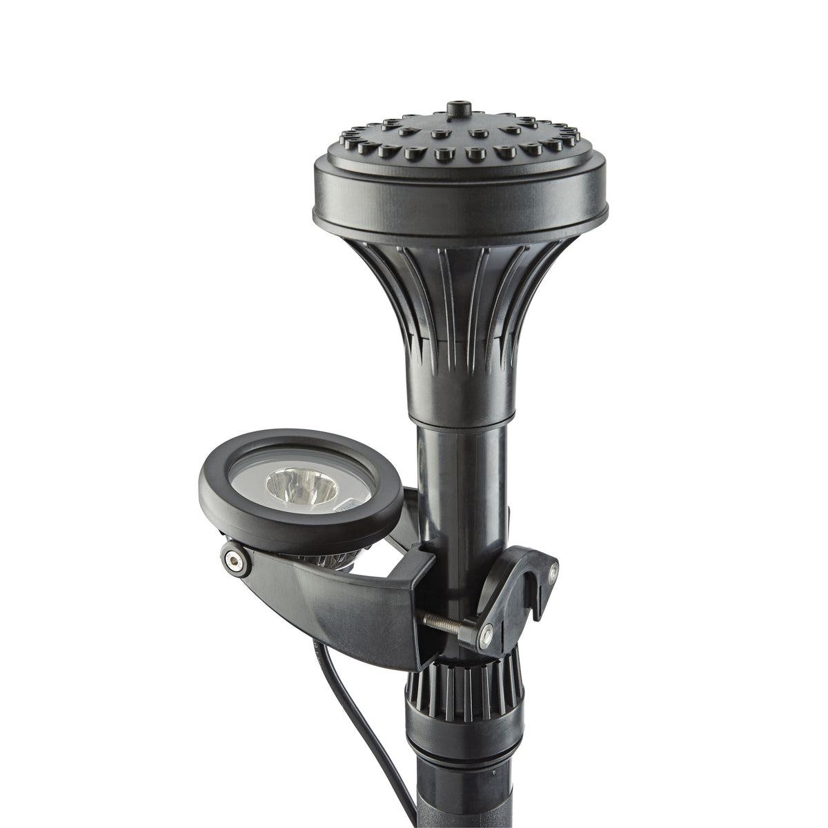OASE’s RGB LED Lighting is a colorful way to extend your enjoyment of your landscape or waterscape into the evening. The OASE ProfiLux Garden LED RGB produces the full spectrum of LED light in conduction with the EGC Cloud Controller unit. It has an adjustable head with innovative integrated clamping system for flexible positioning in a variety of applications including onto the OASE 1” Nozzle Extension. The ProfiLux Garden LED RGB has energy efficient LED with stainless steel adjustment screws and reflector. It’s suitable for use both in and out of the water to a water depth of 13’. The 3 Light Set includes the ProfiLux Garden LED Controller which is required to connect to EGC Cloud Controller. The ProfiLux Garden LED Controller connects up to 4 spotlights; multiple ProfiLux Controllers may be connected to the EGC System. It requires the EGC Cloud Controller unit for operation. The ProfiLux Garden LED RGB includes 1 spotlight with a 16’ power cable, a base and a ground stake. The ProfiLux Garden LED RGB has a 24 volt DC input, a 25˚ beam angle, dimensions of 3”W x 4.5”H, requires the ProfiLux Garden LED Controller and EGC Cloud Controller and has a 3-year warranty.